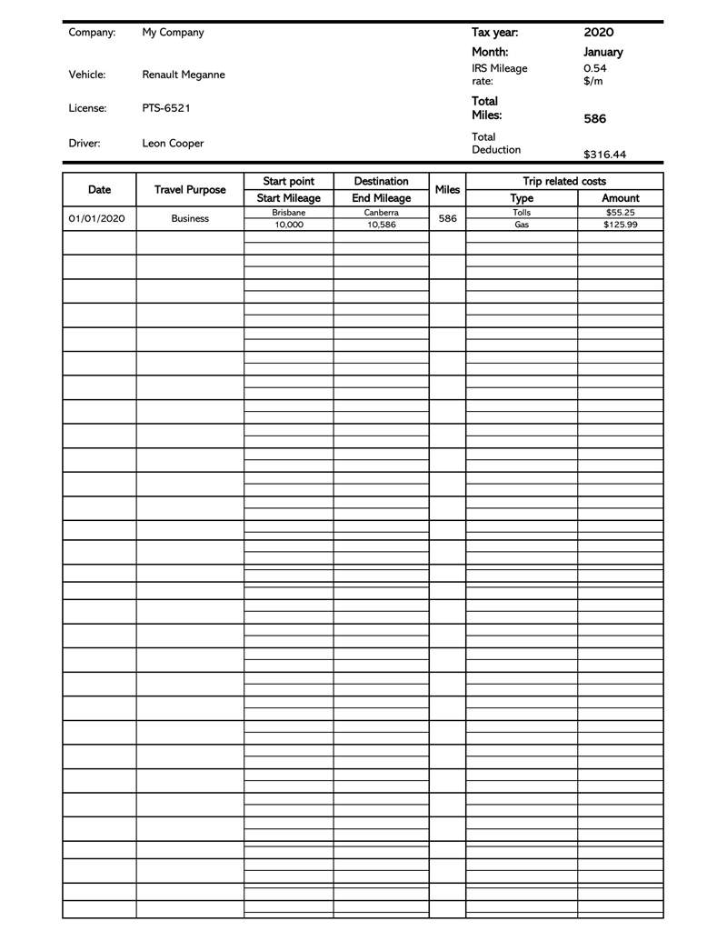 21 Free Mileage Log Templates For Irs Mileage Tracking