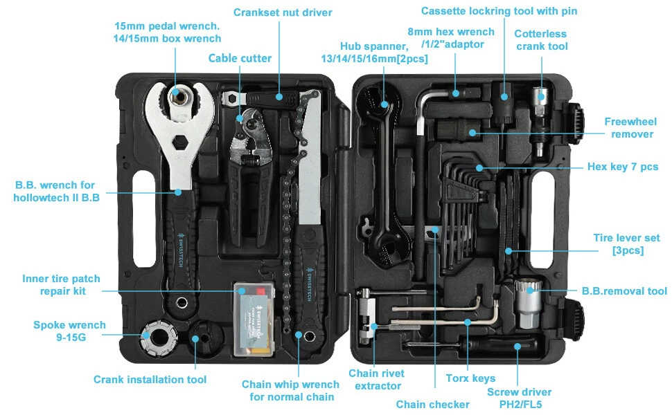 Amazon Com Swiss Tech 30 Piece Bike Repair Tool Kit Bicycle Maintenance Tool Set With Storage Case Bike Accessories For Mountain Road Park Bike Sports Outdoors